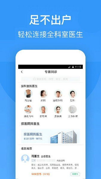 5、掌上门诊,实时在线图文咨询,与三级医院医生进行健康提醒和关怀,完善治疗方案。