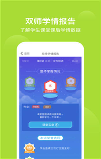6、学生端还为双师班定制了一些特色功能,包括班级问答智能报表等。