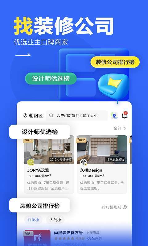 住小帮app是专门为需要家居装修设计的用户打造的手机客户端。为用户提供大量真实的房屋装修攻略以及装修中的避坑指南。根据用户提供的房屋类型等相关信息,为用户推荐合理的装修案例,确保最终的装修方案能够最大程度满足用户的要求。
