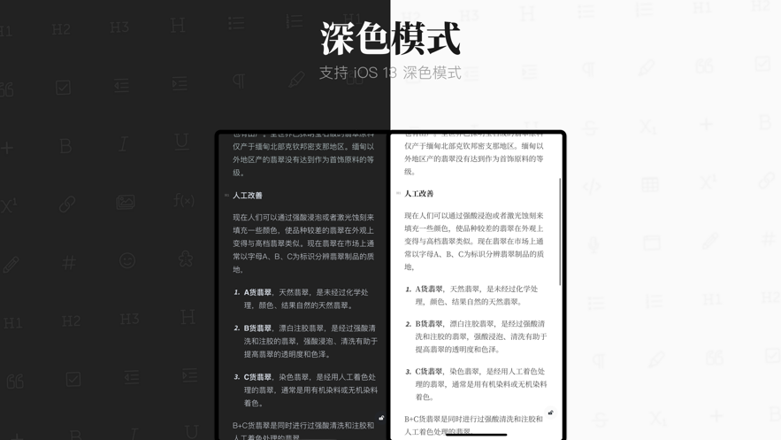 彩色笔记:选择不同的颜色系列,针对不同的“H1”段落修改文字颜色,阅读时快速区分不同段落。