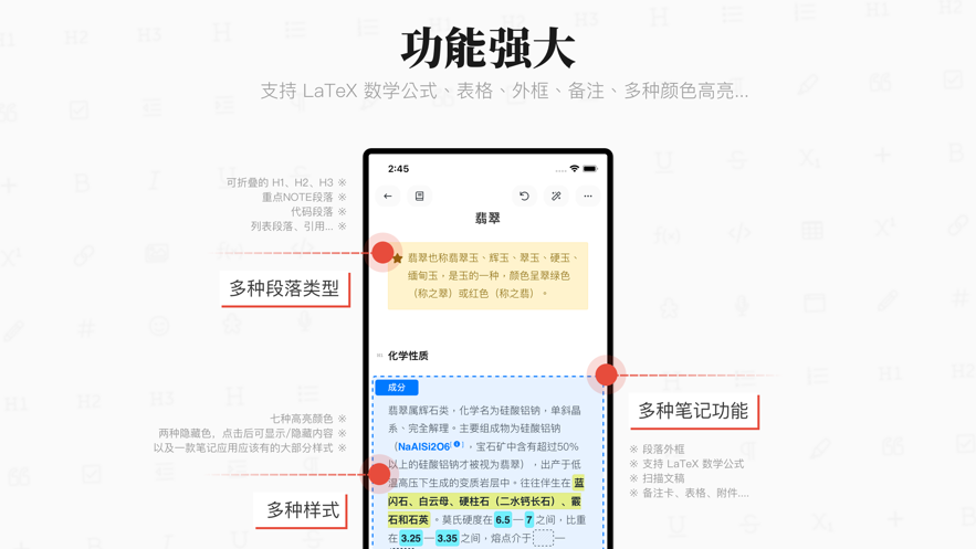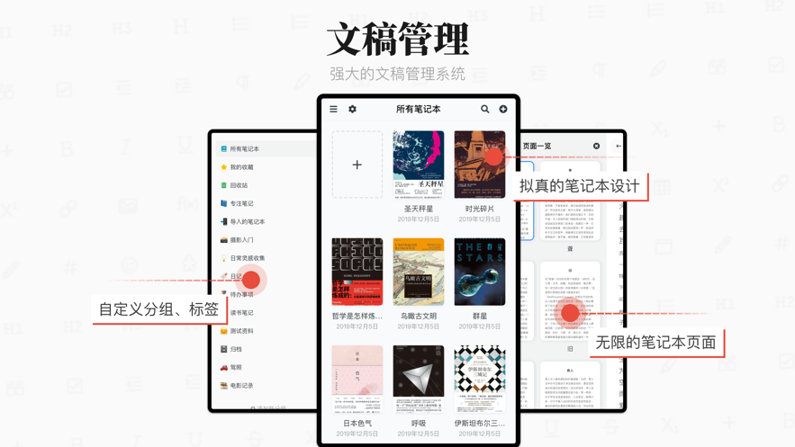 多页笔记结构:笔记本可以创建多页,方便拖动和排序。用于管理不同的笔记章节。