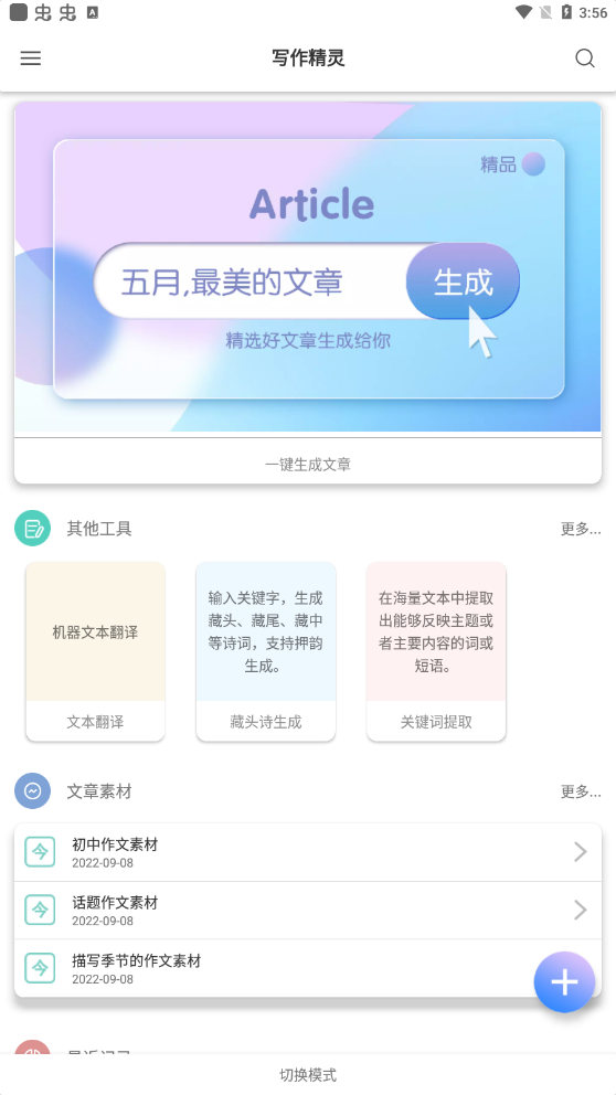写作向导(com.newstart.xzm)是一个非常实用的写作工具。该软件可以帮助用户一键生成文章。使用起来非常方便,有多种类型的模板可供选择。