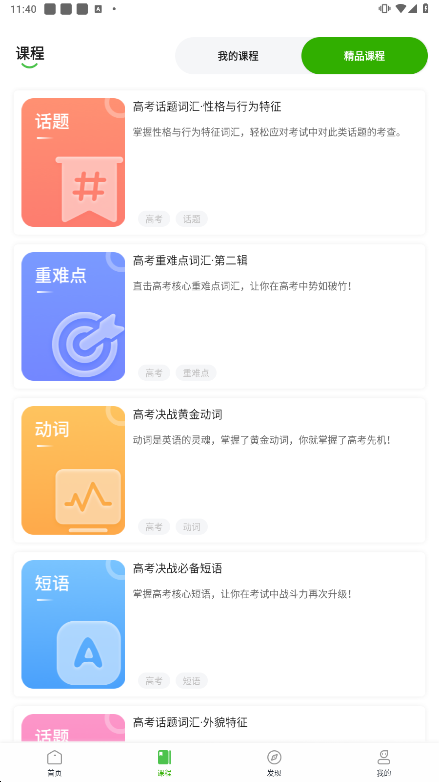 微词(com.android.weici.senior.student)是一款专为高中生设计的英语学习软件。最新版本可供下载。本应用整合了高中所有英语知识点。用户可以免费在线学习英语听力和口语,练习英语试题。该应用还支持离线发音操作,方便用户随时随地学习。
