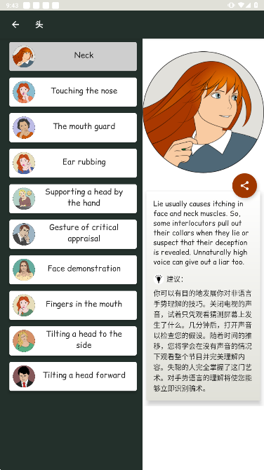 1.通过这个应用程序,您将学会理解肢体语言和手势,了解一个人的想法。