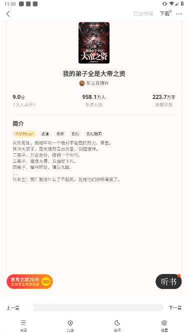 用户可以在本地下载小说并阅读或听书,无需消耗流量,无需联网。
