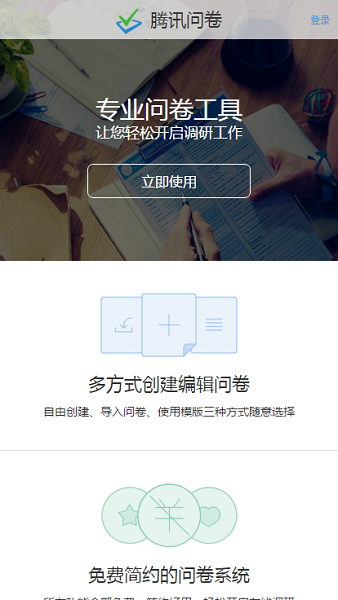 腾讯问卷下载安装是一款专业的问卷调查软件。使用腾讯问卷下载安装软件,可以创建在线问卷、评估、投票等平台。该软件将发展成为一款专注于为用户提供强大功能的软件。这里该软件可以提供人性化的在线问卷设计、数据收集、定制报告、收集的调查结果分析等一系列服务。问卷调查是公司改进工作的一种方式。该软件可以对员工进行360度的评估,并将数据导出为常用的办公格式文件。
