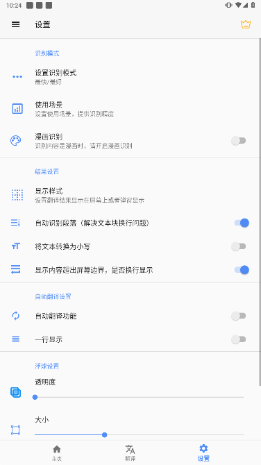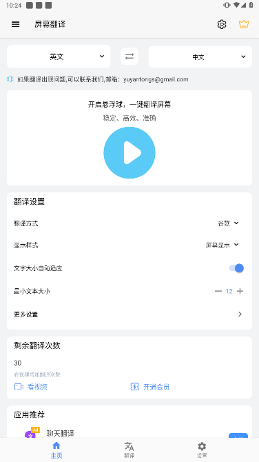 2、界面设计简单实用。用户可以在线打开浮动,实现一键屏幕翻译功能。