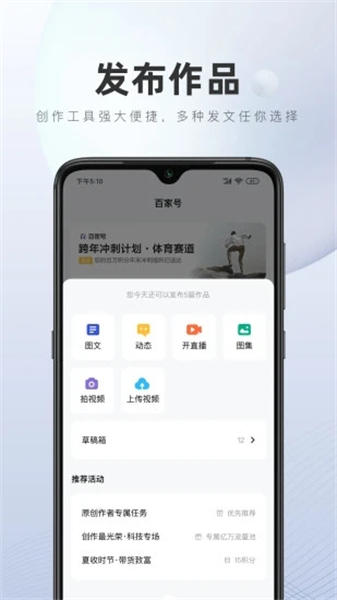 2.支持内容创作者轻松发布文章、图片、视频作品。