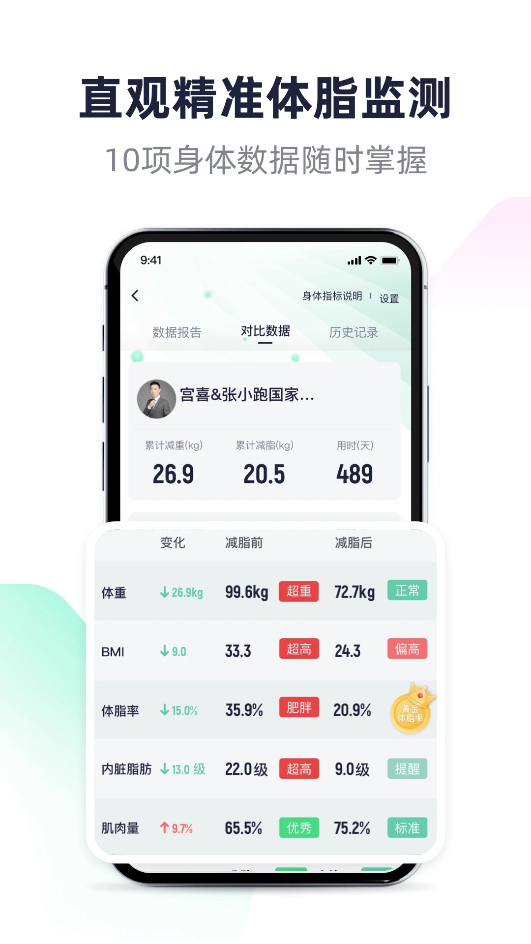 4、体脂监测:实时监测用户体脂变化,及时调整减脂计划,保证减脂效果。