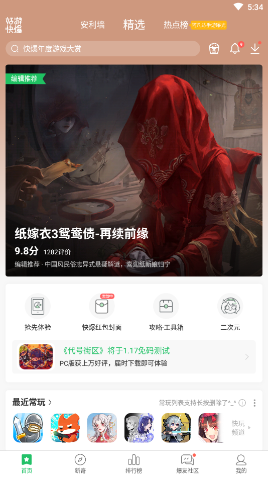 您可以浏览推荐游戏、参与内测、查看游戏排行榜等功能。