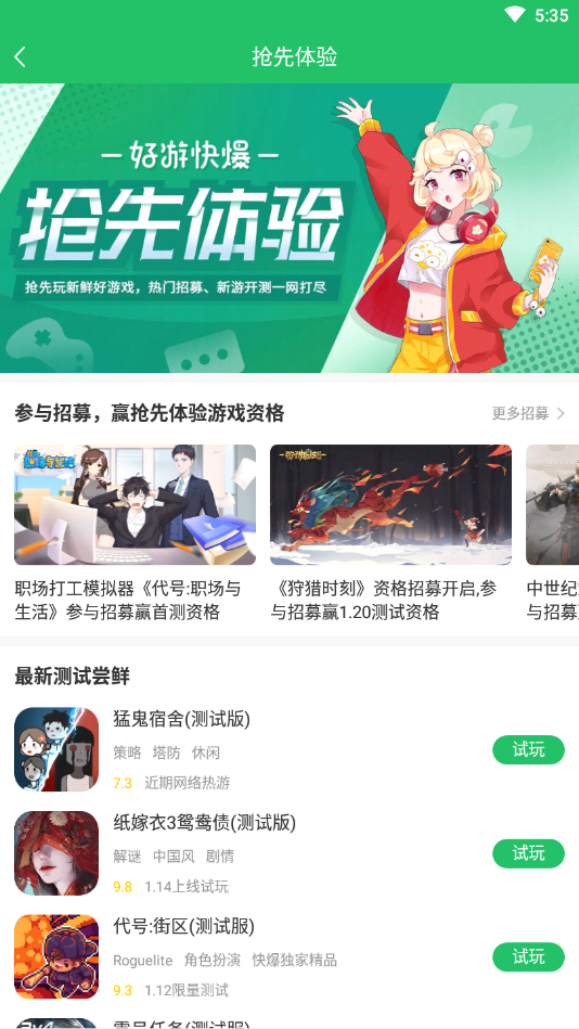 抢先内测:用户可以提前参与新游戏的内测,成为第一批体验并反馈的用户。