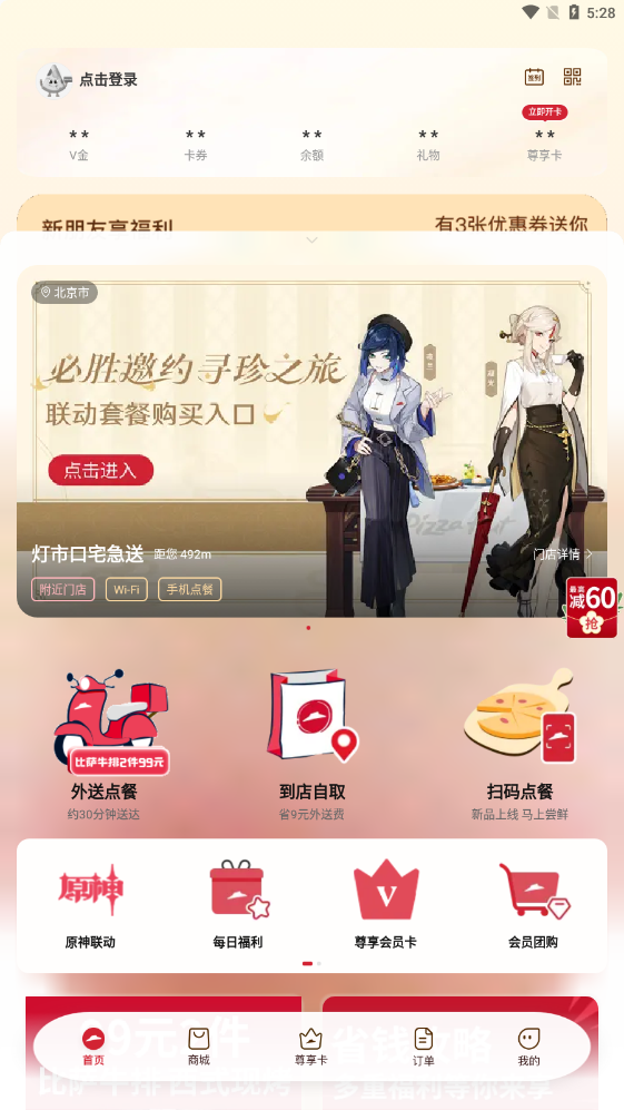 必胜客(com.yumc.phsuperapp) 最近出售了链接套餐原神。相信很多原版朋友都听说过。如果你也想获得原神的周边福利,不妨下载最新版本。开始在必胜客应用程序上进行预订。