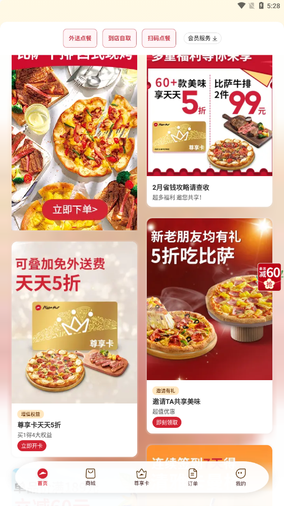 必胜客超级APP惊喜升级!界面已经变成了一个华丽的购物中心。