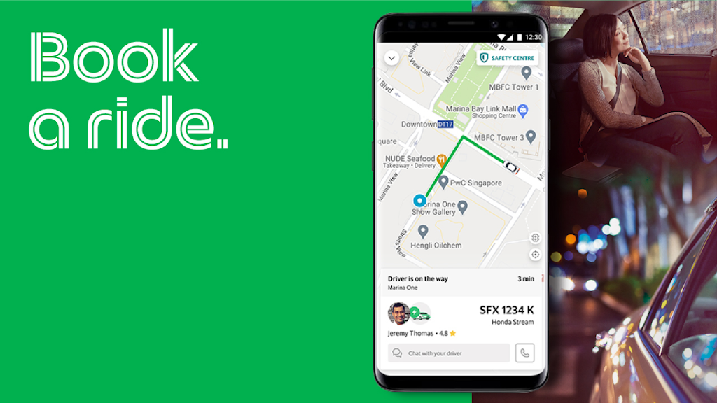 2.GrabCar:乘坐舒适的私家车服务并支付固定费用。