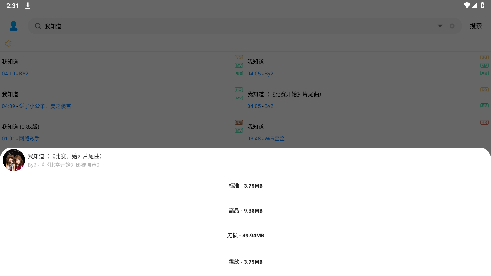 3.点击您喜欢的歌曲,选择下载质量,或直接在线播放。