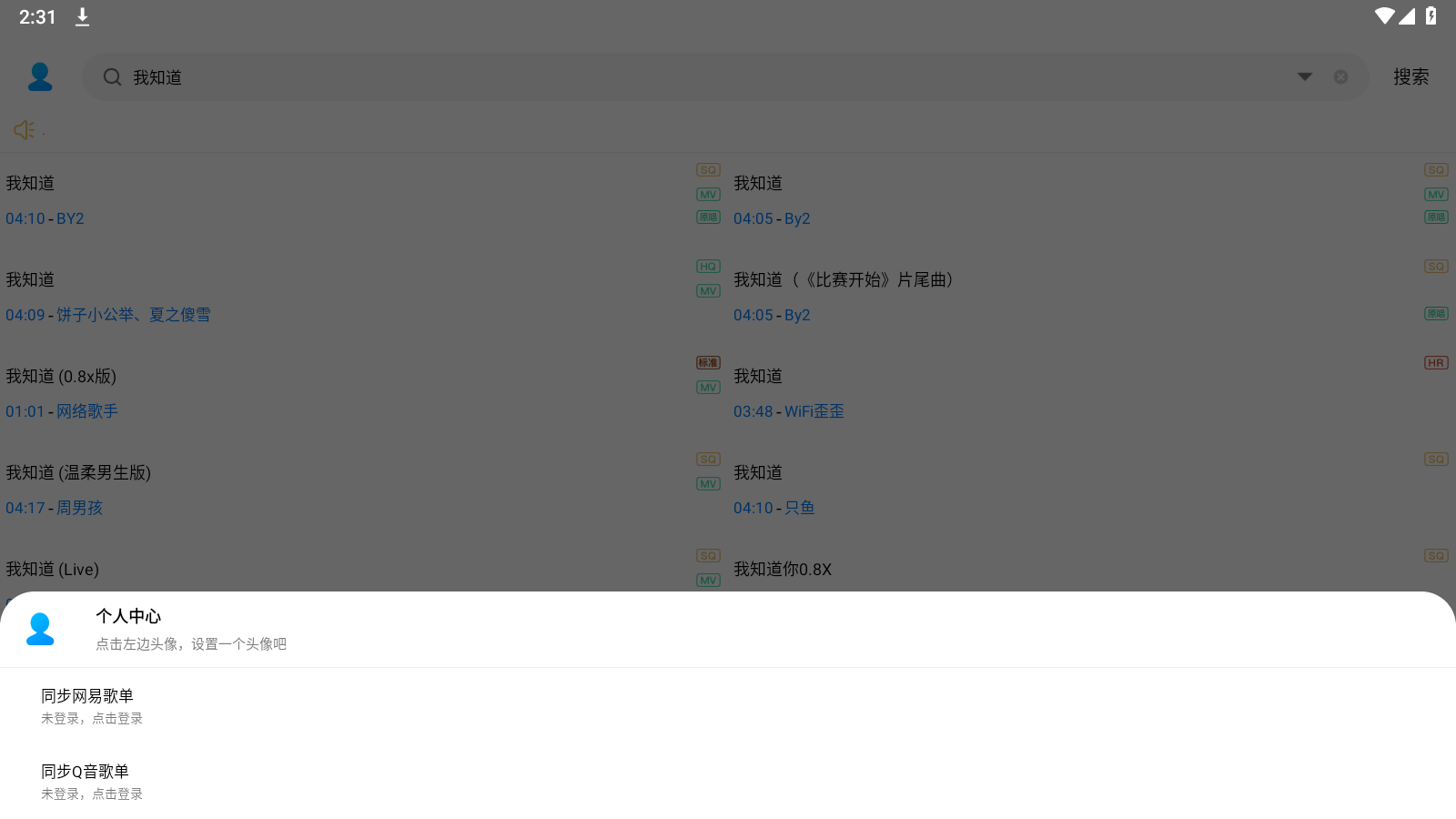 8.当然,软件支持登录,点击左上角头像,会弹出个人中心,选择同步播放列表的类型,就可以了!