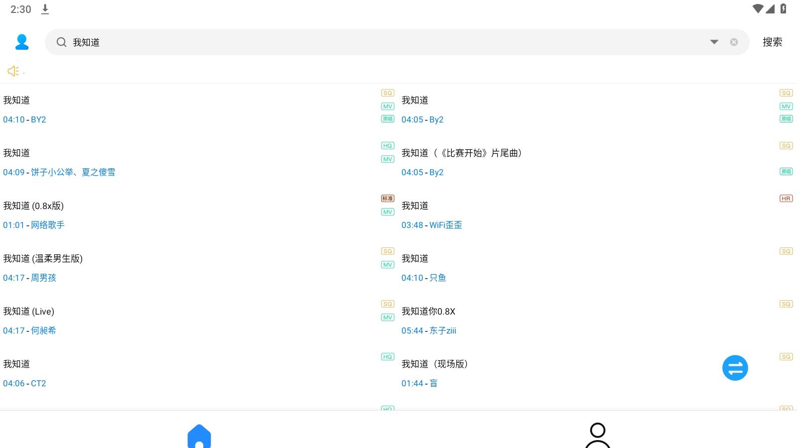 底部的四个功能中,第一个和第二个的界面完全相同,功能也相同。他们都搜索和下载音乐。根据开发者的意图,如果第一个不能使用,可以使用第二个。高分辨率功能。有一个小小的区别,搜索到的第一个将分布在两列中,而第二个搜索将分布在一列中。