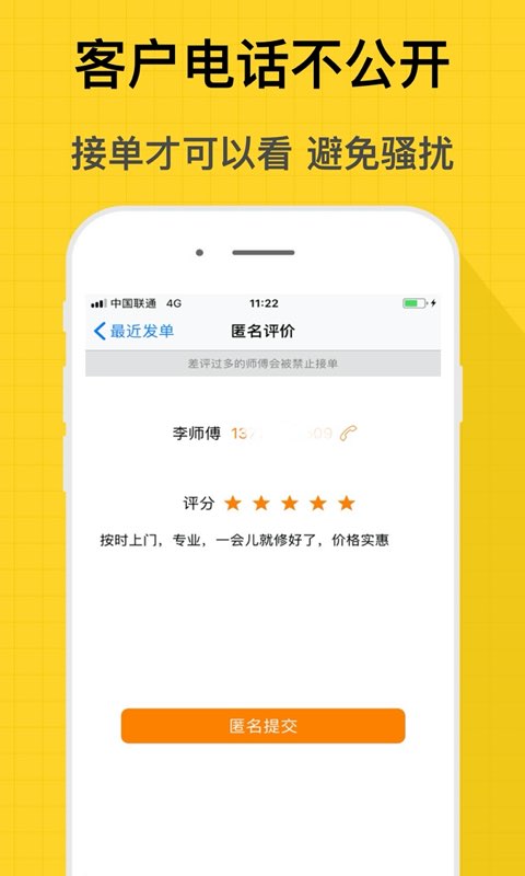6、服务完成后,可以在APP上对服务人员进行评价。