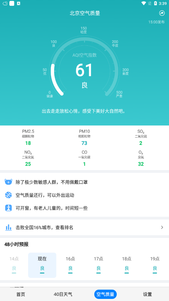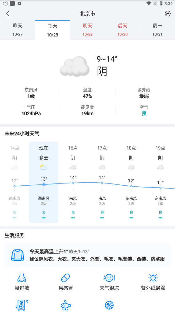 3、每次出门前,可以查看天气情况,做好准备。