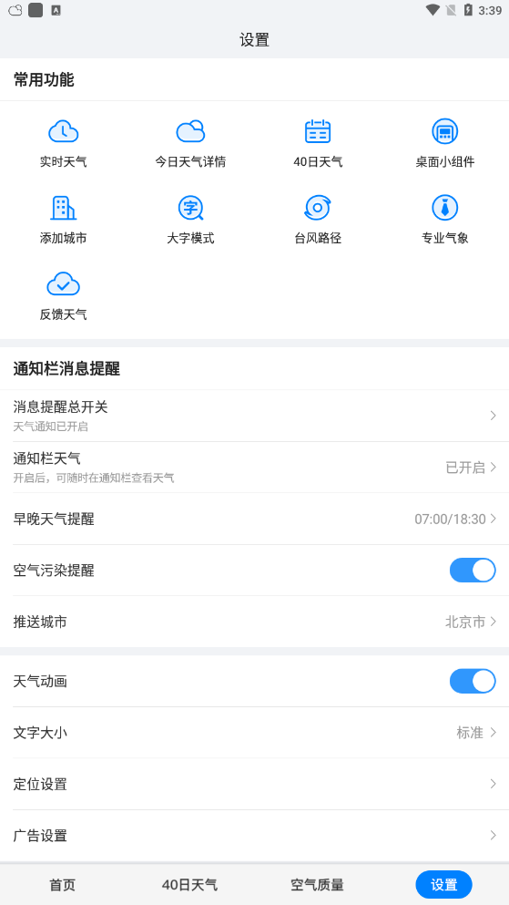 准时的天气适合各种人。字体大小可以自己调整。对于所有阶段来说,它都非常用户友好。天气预报是通过多个气象局提供的数据推送的,非常准确,让大家都能了解真实的天气情况。