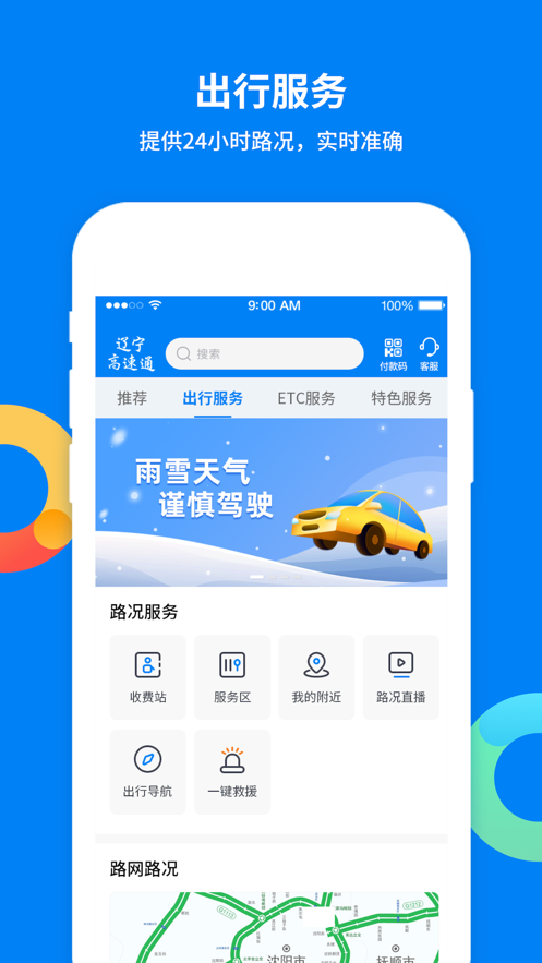 6、为公众出行提供一系列高效、专业、便捷的服务应用,包括高速路线查询、实时路况、车辆救援、定制我的路线;