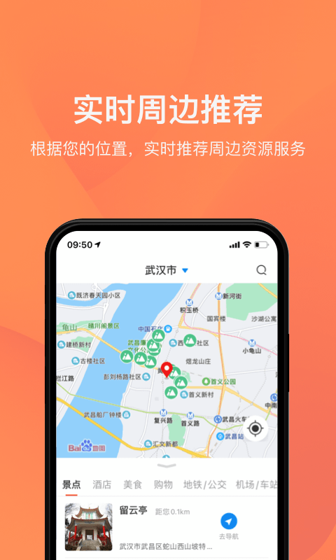 湖北旅游APP会根据您的位置实时推荐周边资源和服务。