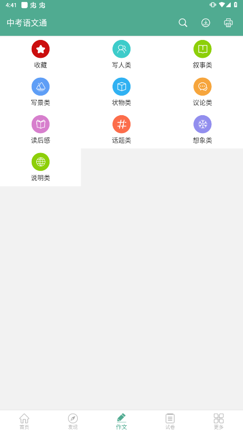 作文:包括中考作文综合集和各类作文。目前,综合文集有九个类别