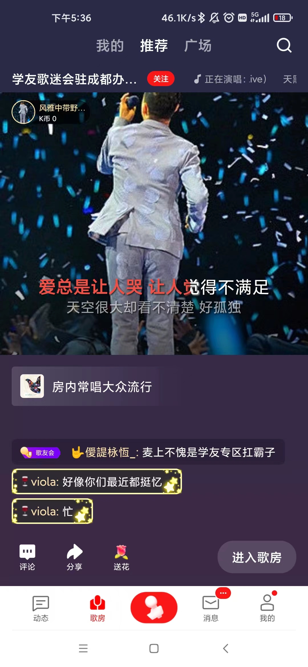 K歌直播——你可以观看你喜欢的歌手唱歌,与他互动,甚至自己当主唱、主播!
