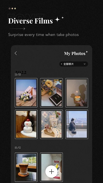 采用多种经典胶片滤镜,每个主题根据风格搭配不同的胶片颗粒、时间水印、漏光效果、胶片相纸等成像效果,让每张照片都充满惊喜。