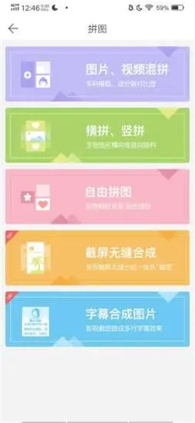 2.拼图视频:支持多种模板、图片拼图、图片视频拼图、视频视频拼图、长图拼接。