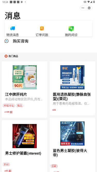 药品种类齐全:覆盖货架上大量优质药品,包括男士药品、家用药品、保健品、专科药品等;药品覆盖医药行业各个环节,为用户提供一站式购买保健品