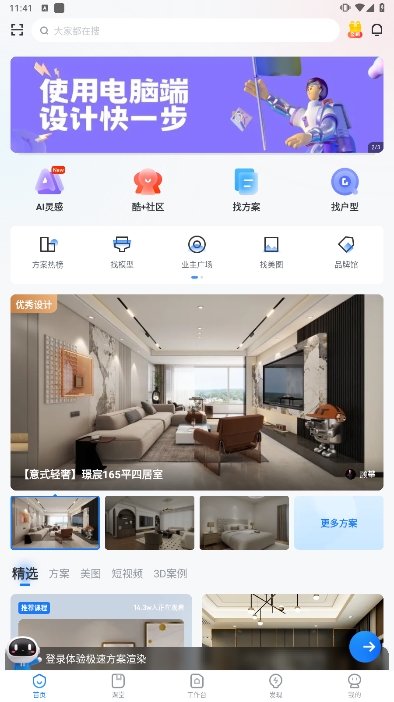 酷家乐设计师是一款非常优秀的装修设计软件。不仅为设计师提供了展示设计才华的平台,也为广大准备装修的用户提供了便捷、专业的服务。通过手机版酷家乐设计师APP,用户可以快速了解自己想要的装修风格,并可以与设计师沟通,让设计更符合自己的需求。用户还可以通过搜索功能快速找到自己感兴趣的装修设计,提高效率。