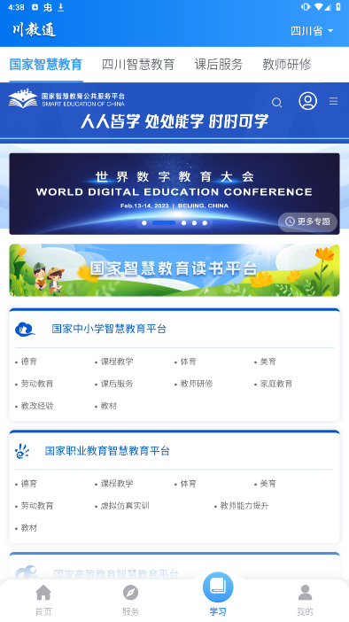 四川教育传播(Net.scedu.bigapp.cjt)是由四川省教育部领导的在线学习平台,旨在提供全方位,多级和三维教育信息服务。该平台包括基础教育,职业和技术教育以及成人教育等各个领域的课程资源,涵盖从幼儿园到高中的多个阶段学习内容以及职业技能培训。