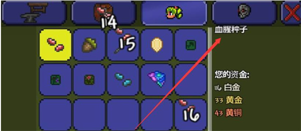 在游戏中,玩家创造了一片猩红之地。他们需要在血月期间去找树妖,然后与它交谈并进入商店。然后我们在商店购买血种子,然后将种子种在地上,也就是这个种子可以用来改变周围的环境。