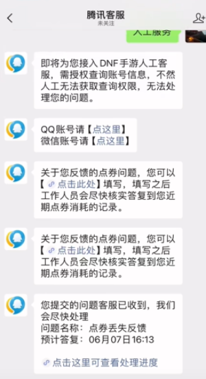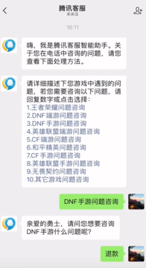 3.然后会出现相关问题选择,然后点击DNF手游问题咨询