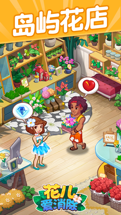游戏以消除为通关模式,经营属于你自己的美丽花店。卡通人物肖像,丰富玩法,还有为你精心布置的花店解锁更多剧情和道具。