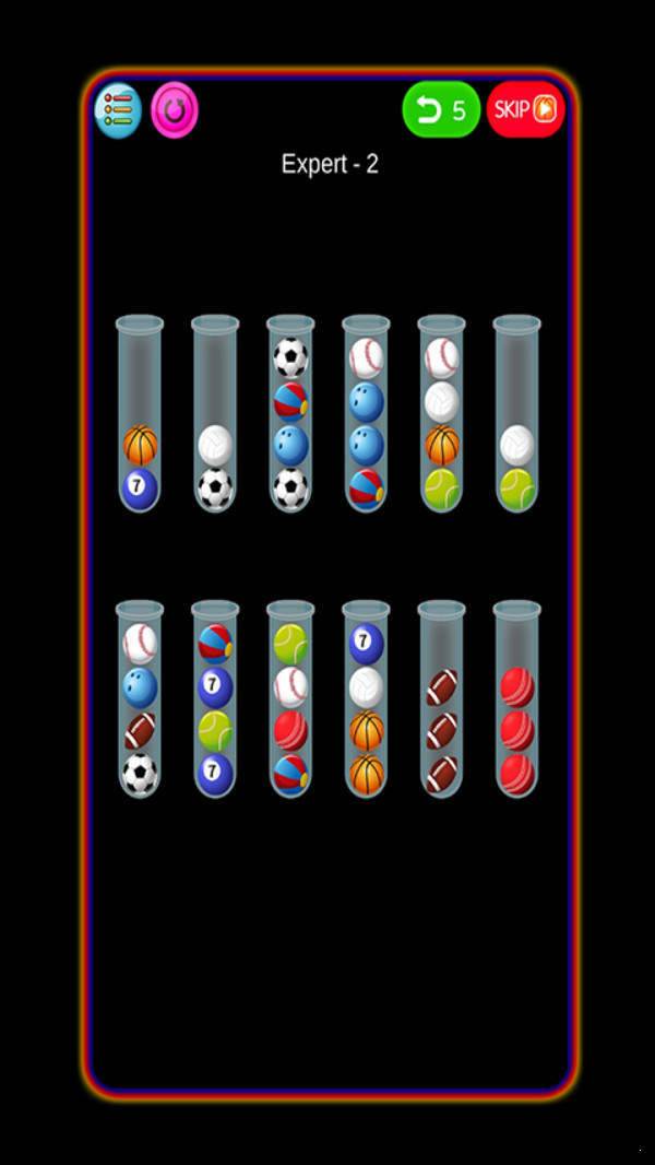 只需一根手指即可玩的游戏“球球大分类”就在这里。玩家点击试管,将不同颜色的球进行分类即可通过关卡。操作虽然简单,但是想要完美通关还是需要一定的技巧的。