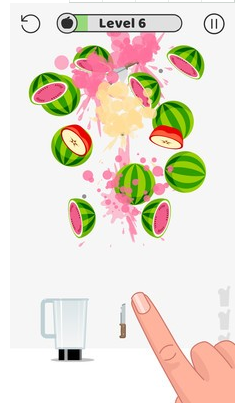 每当有或没有刀的水果掉落时,都会掉落一滴血,直到血耗尽游戏结束。