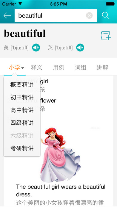 3.提供小学、初中、高中、大学的词汇学习点