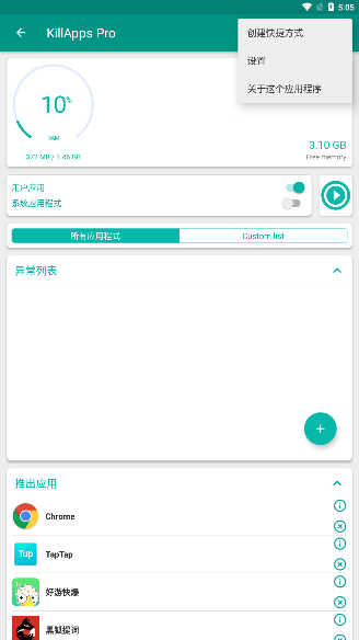 Killapps(com.tafayor.killall) 这个软件绝对适合各位朋友。它可以在每个人的手机中占据一席之地。如果您平时感觉手机运行缓慢,可以尝试使用这款工具来清理手机。手机隐藏背景。