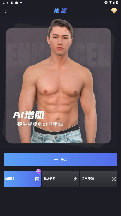 4.专业肌肉测绘,一键在线塑形,完美身材,操作非常简单。