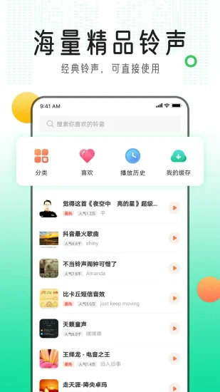 3.多种铃声类别,用户可以更快找到自己喜欢的铃声。
