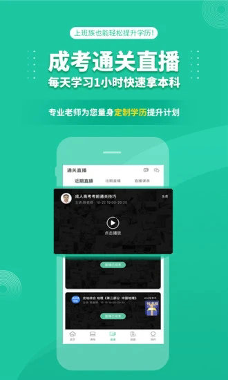 成人高考免费版是一款考试学习软件。免费版:成人高考为备考用户提供免费的直播课程和学习视频。还提供历年真题,真实体验考试难度,帮助用户顺利通过期末考试。必修知识点、考试说明、历年考试讲解、丰富完整的练习题、免费视频、一起学习、考试大纲全面、支持离线下载、清晰度选择、考场查询,方便好用!