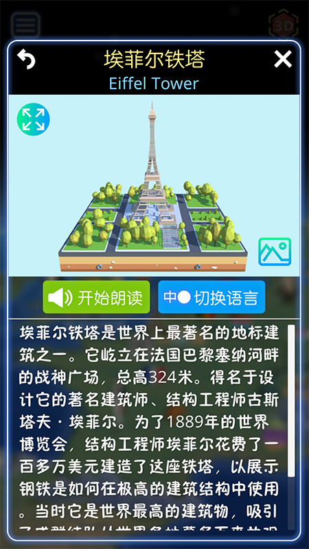 2. 英文文本:所有国家和事物都有英文版本。用户可以在这里学习英语。