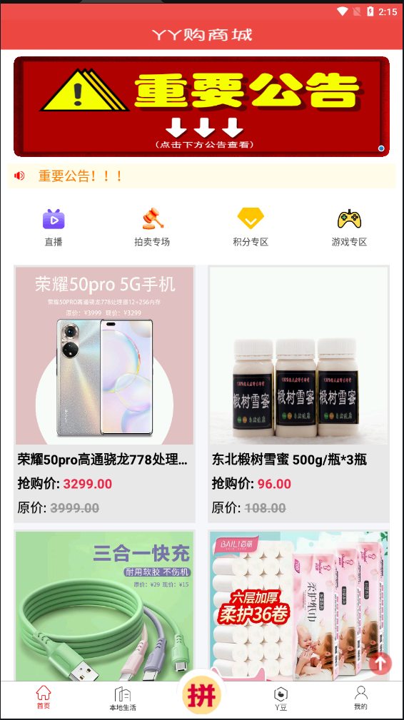 yygou(com.hxlnw.asshop)最新APP下载地址:http://yy-gou.oss-cn-beijing.aliyuncs.com/android_apk/yyg_Android20220307.apk,这是一款日常生活商品的商城软件,可以为大家带来更多的好处。