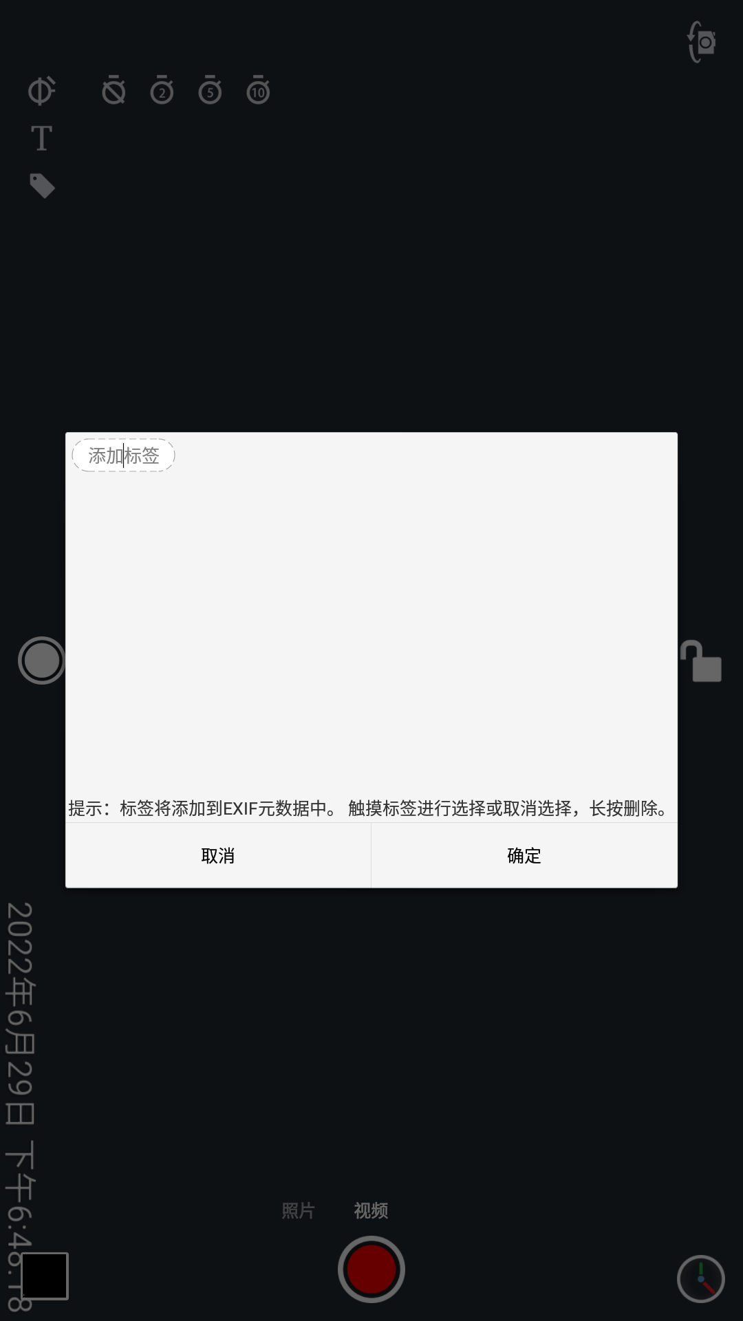 用户可以在相机上添加自定义文本、情感。