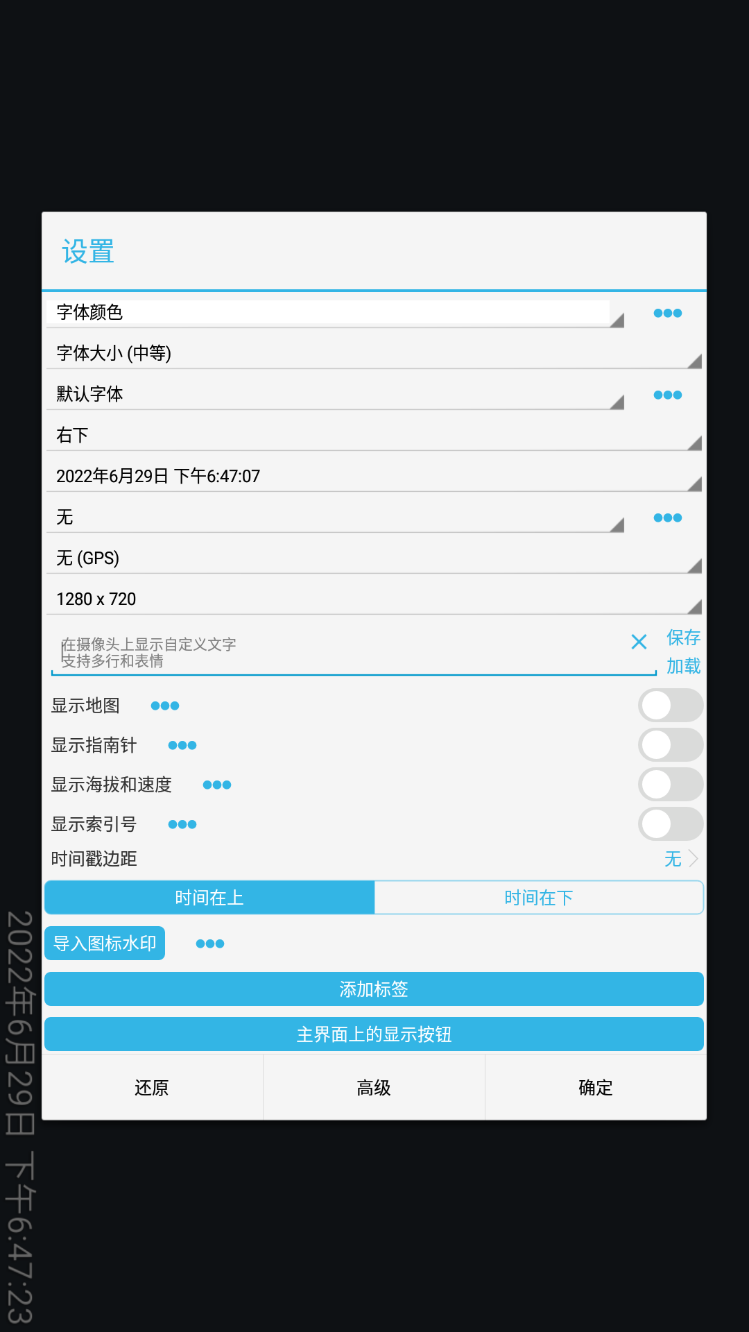 您可以轻松地为您拍摄的视频添加位置、描述、时间和日期。除此之外,它还可以进一步定制以满足您的需求和偏好。您可以自由更改字体、字体颜色、大小、位置、背景和不透明度。您还可以添加其他功能,如GPS、位置、海拔和速度!通过此应用程序,您可以实现您想要的任何效果。