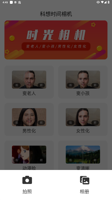 时光相机是一款非常好用的拍照软件,功能非常强大。为用户提供了大量的特效播放方式。大家可以自由选择不同的效果拍照,一键即可变成动画脸。使用起来非常方便。
