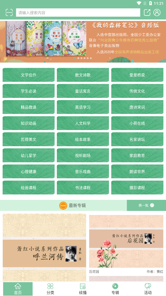 小禾听书是一款手机有声读物播放软件。提供海量专业录制、优秀独家自制有声读物,包括小说、散文、儿童文学、励志等多种体裁。