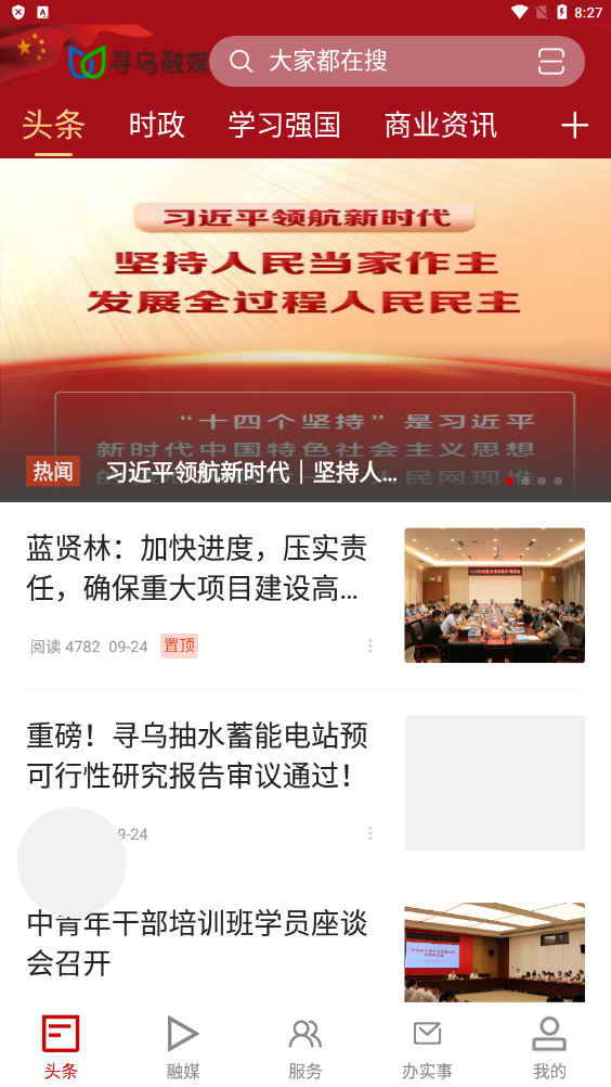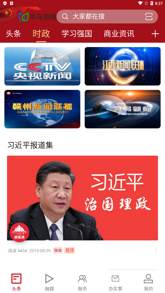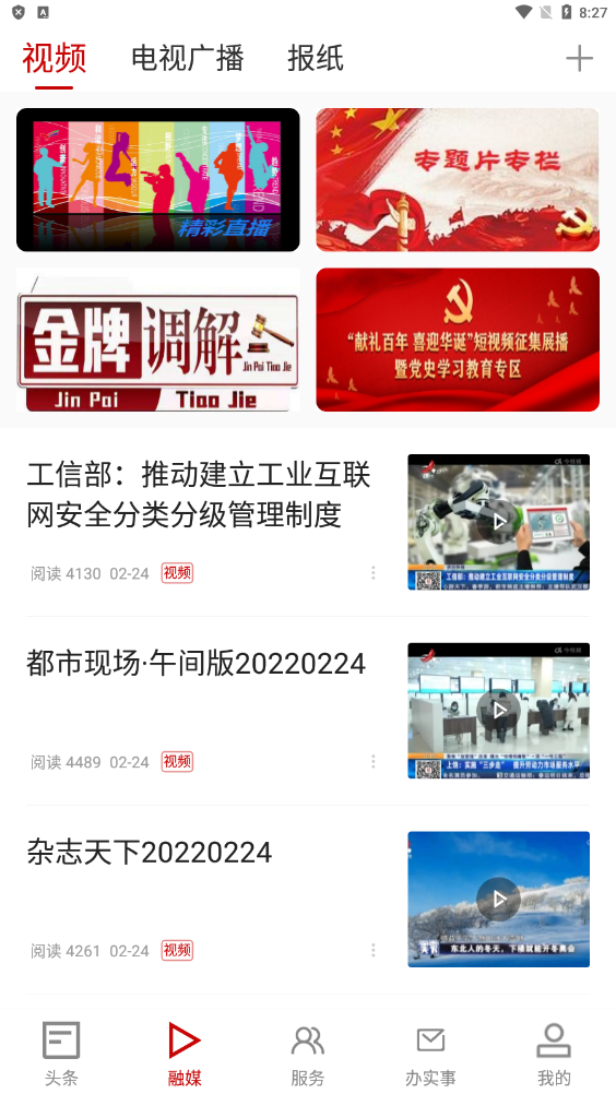 多个新闻频道,新闻头条、文明实践、视频等,自由切换频道阅读